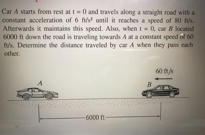 Since the cars started at the distance 6000 ft. At 13.33 s, the cars separated by the distance is .
