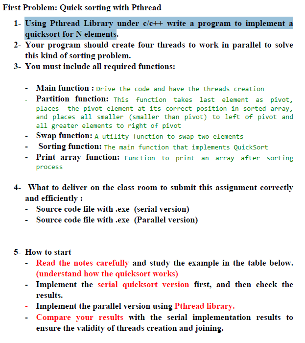 Here we are implementing the quicksort algorithm using the cucurrency in C with Pthreads.