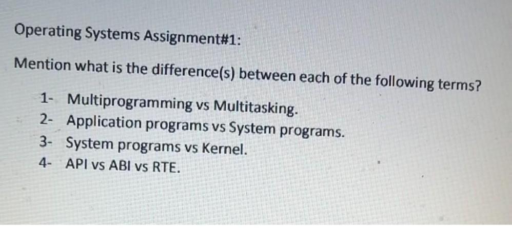 CommentAnswer: Following are the difference between Multiprogramming vs Multi-tasking :-